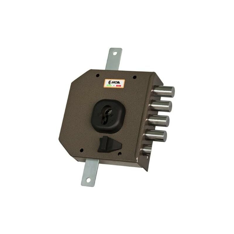 SERRATURA MOIA DA APPLICARE TRIPLICE "G 454 DXB" PRED.CIL.EUROPEO C/TRAP Verso: DXB Apertura: Chiave Protezione dal trapano grazie alla piastra interna con spine anti-trapano - Elevata resistenza allo scasso grazie al triplo mantonnet - Sistema di anti-sollevamento della gorges - Saracinesca che blocca la serratura in caso di effrazione - Scarpetta porta cilindro anti-sfilamento - Questa serratura a leve per cilindri a profilo europeo offre una quadruplice chiusura: 4 chiavistelli manovrabili con chiave (interno ed esterno), uno scrocco e due leve per le aste