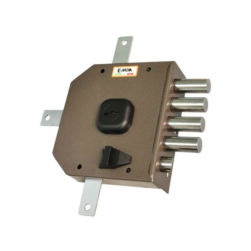 Serratura doppia mappa applicare legno 4 chiusure verticali Catenacci laterali 4 pistoni e scrocco reversibile Pomolo plastica incluso Interasse catenacci mm 25 Scatola mm 143,5x153,5x29 - Entrata mm 63 Dimensioni canotto mm 30x59 3 chiavi Aste e deviatore non inclusi