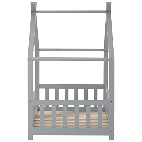 Moimhear Bellissimo letto per bambini, 200 x 90 cm, in legno massiccio con recinzione