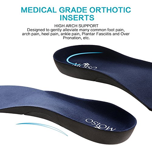 MOISO - Solette ortopediche a lunghezza intera con supporto per arco e cuscinetto metatarso per fascite plantare, per uomini e donne, Blu, 40/44 EU