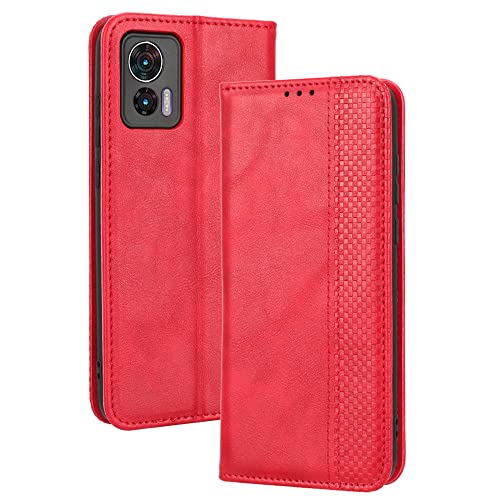 MOJIA Cover per Motorola Moto Edge 30 Neo/Edge 30 Lite, PU Custodia Antiurto Resistente ai Graffi, Custodia Flip Portafoglio per Telefono con Supporto e Slot per Schede. Rosso