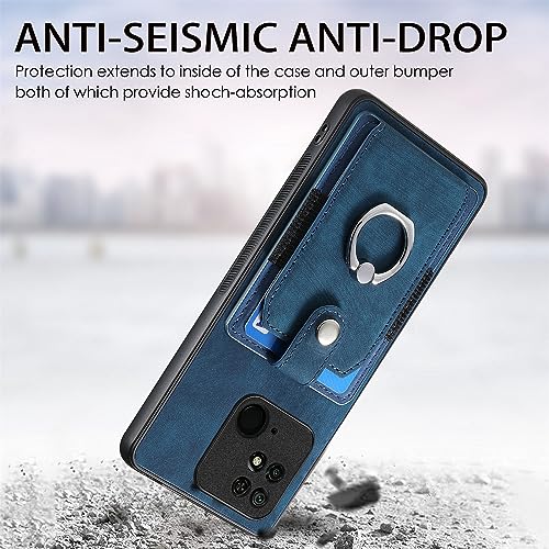 MOJIA Cover per Xiaomi Redmi 10C, Custodia Ultra Sottile Porta Carte, Copertura per Telefono in TPU, Guscio Multifunzionale con Supporto ad Anello. Blu