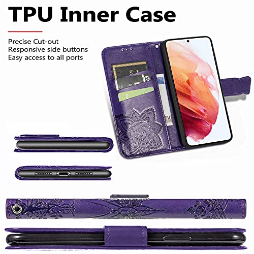 MOJIA Custodia per ZTE Blade A53, Farfalla in Portafoglio Flip Cover Sottile con Chiusura Magnetica Slot per Schede Cavalletto Cinturino da Polso. Viola