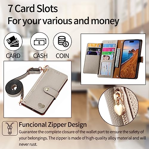 MOJIA Custodia per Honor Magic5 Lite 5G (Magic 5 Lite) / X9a, Alta qualità Pelle Flip Portafoglio Cover per Telefono, Multifunzione Porta Carte con Tracolla Custodia. Grigio