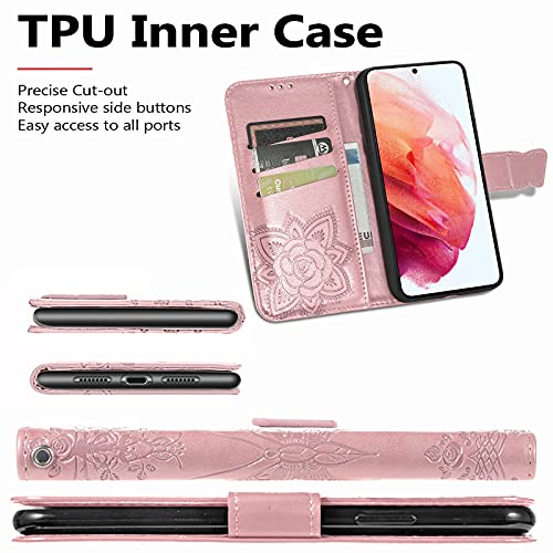 MOJIA Custodia per Oppo A96 / A76 4G / A36 4G, Farfalla in Portafoglio Flip Cover Sottile con Chiusura Magnetica Slot per Schede Cavalletto Cinturino da Polso. Oro Rosa