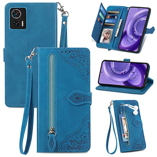 MOJIA Custodia Portafoglio per Motorola Moto Edge 30 Neo, Pelle PU Flip Cover per Telefono con Guscio Interno in TPU, Multifunzione Porta Carte con Cinturino Polso. Blu