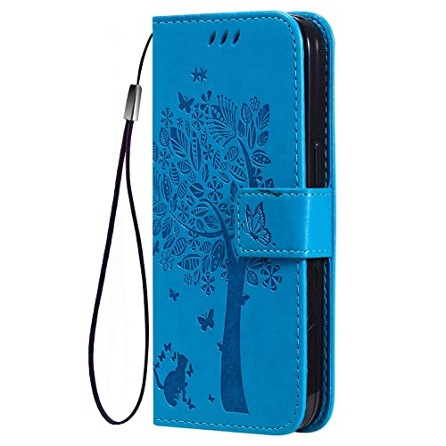 MOJIA Custodia per Xiaomi Redmi 9AT | Redmi 9A, Goffratura in Portafoglio Flip Cover Sottile con Chiusura Magnetica Slot per Schede Cavalletto Cinturino da Polso. Blu