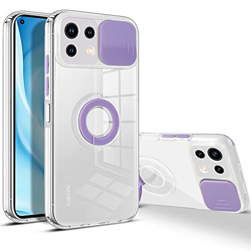 MOJIA Trasparente TPU Custodia per Xiaomi Mi 11 Lite 5G / 4G / 11 Lite 5G NE, Protezione per Diapositive della Fotocamera Cover, TPU Paraurti Anticaduta con Supporto ad Anello. Viola