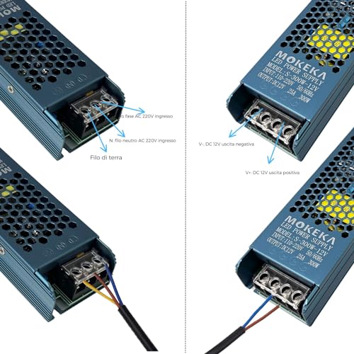 MOKEKA Alimentatore 12V 25A 300W LED Driver Trasformatore Convertitore AC 110 / 220V Adattatore LED a Tensione Costante per Striscia LED