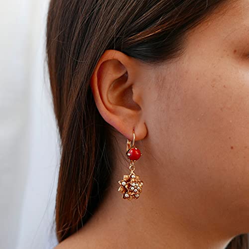 Mokilu' - Gioielli - Orecchini Vintage - Donna - Ottone dorato 24kt - Corallo e Perle