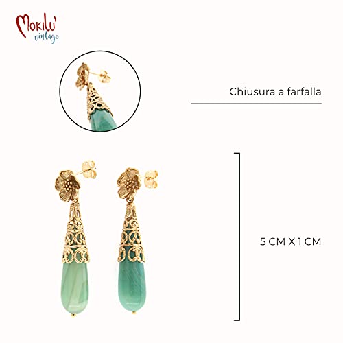 Mokilu' - Gioielli - Orecchini Vintage - Donna - Ottone dorato 24kt - Pietra verde