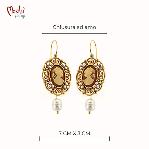 Mokilu' - Gioielli - Orecchini Vintage - Donna - Ottone dorato 24kt - Cammeo - Perla
