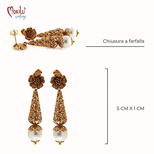 Mokilu' - Gioielli - Orecchini Vintage - Donna - Ottone dorato 24kt - Perla