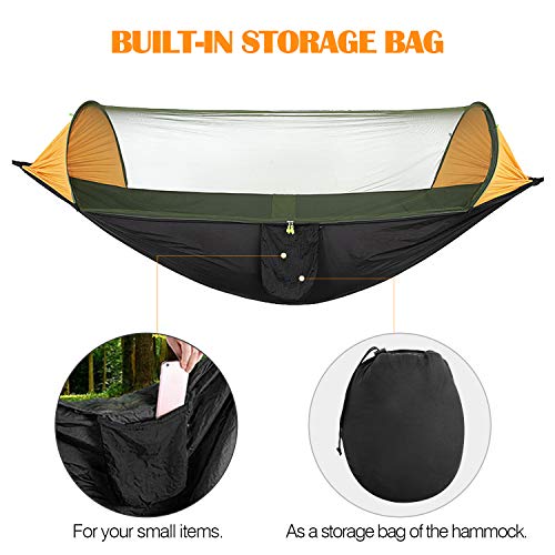 2 IN 1 AMACA - Vieni con zanzariera traspirante per tenere lontano da zanzare, mosche, insetti. Se hai bisogno di una normale amaca d'albero, basta tagliare le 2 barre, ruotare l'amaca di 180 ° per mettere la rete sul fondo, quindi diventa un'amaca normale.