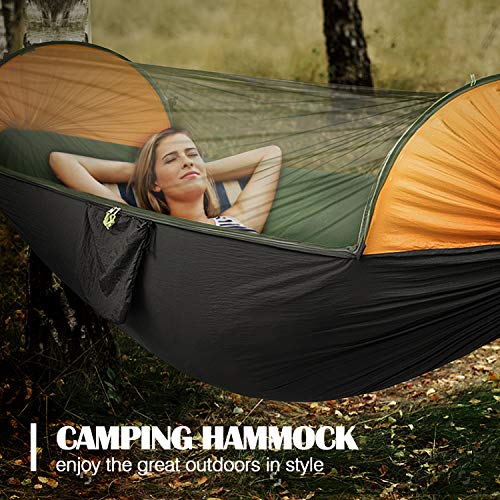 MoKo Amaca da Campeggio con Zanzariera, 2 in 1 Amaca in Nylon con Paracadute Hammock Outdoor Portatile Ultra Leggero Lettino per Viaggio Escursionismo - Arancione & Nero