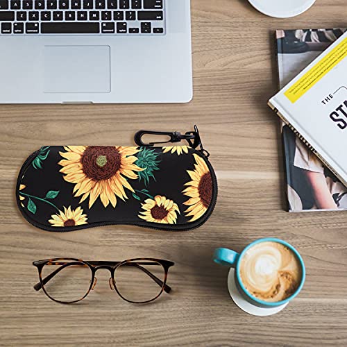 MoKo Astuccio per Occhiali da Sole, Custodia per Occhiali, Custodia Portatile a Cerniera di Neoprene Morbido con Clip da Cintura, per Occhiali, Montature, Cosmetici, Chiavi, Penne, Schede, Girasole