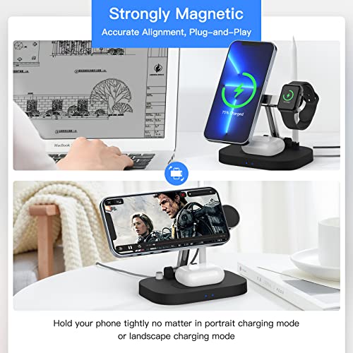 MoKo Caricatore Wireless, 4 in 1 Caricatore Rapido Stazione di Ricarica Wireless Magnetica Compatibile con 12/Pro Max/Pro/iPecncil 1a Gen/iWatch Series SE/7/6/5/4/3/AirPods 3/2/Pro