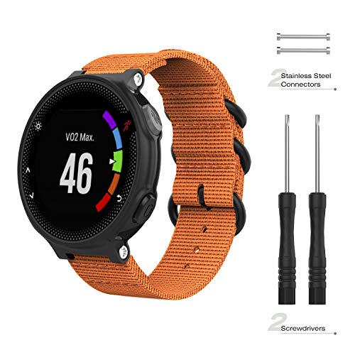 MoKo Cinturino Compatibile con Garmin Forerunner 235/235 Lite/220/230/620/630/735XT, Morbido Braccialetto di Ricambio in Nylon con Fibbia Classica - Arancione