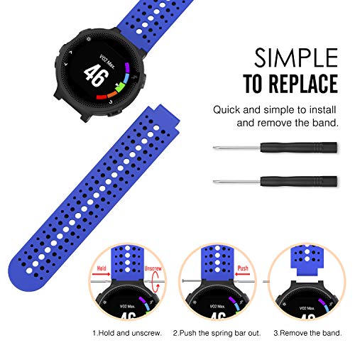 MoKo Cinturino Compatibile con Garmin Forerunner 235/235 Lite/220/230/620/630/735XT Smartwatch, Braccialetto di Ricambio in Morbido Silicone - Nero e Blu Reale