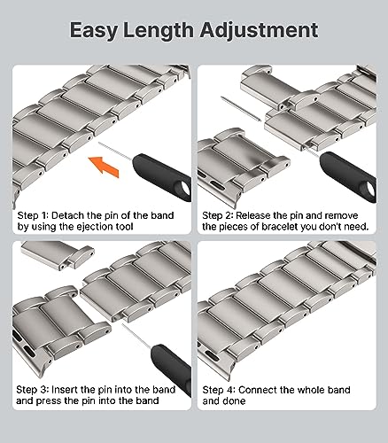 【Robusto e leggero】Con la durezza e la rigidità dell'acciaio e la leggerezza della delicatezza dell'alluminio, questo cinturino per Apple Watch Ultra è molto comodo da indossare, non causa perdite di vernice e può resistere a lungo. Il peso netto di questo cinturino in titanio è di 0,16 lb.