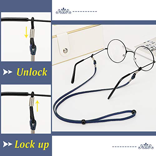 MoKo Cordoncino Occhiali, Reggi Occhiali 4 Pezzi in Pelle con Fermi Regolabili, Dim 38 cm, Accessori Occhiali Protezione Anti Cadute, Urti, Cinturino per Tenuta Occhiali Solari, Lettura, Blu