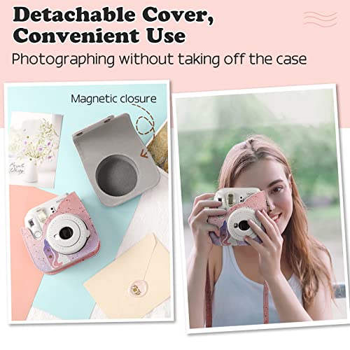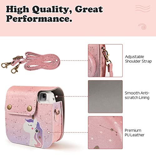 MoKo Custodia per Camera, Custodia per Fujifilm Instax Mini 12/11/9/8/8+, Borsetta per Camera, Porta Camera in Pelle PU con Tracolla Regolabile, Porta Fotocamera, Accessori per Camera, Unicorno Rosa