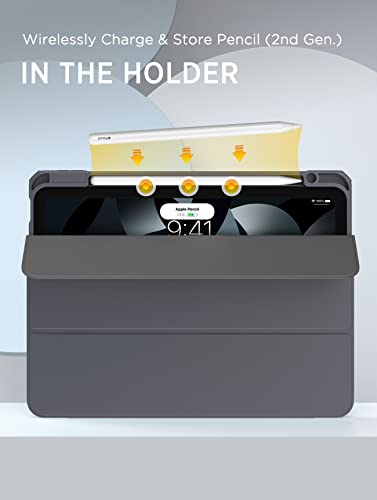 MoKo Custodia compatibile con iPad Air 5 2022/4 2020 da 10,9 Pollici con Portapenna Apple Pencil 2, Cover Protettiva TPU + Retro PC Rigido Antiurti Auto Sveglia/Sonno, Grigio Siderale