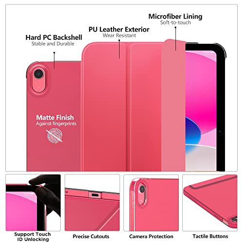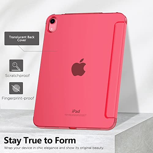 MoKo Custodia Compatibile con iPad 10 Generazione 2022 iPad 10,9", Custodia con Coperchio Tripieghevole, Retro Traslucido in Pelle PU e PC, Auto Riattivazione e Standb, Anguria Rossa