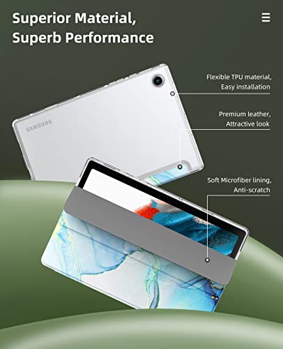 MoKo Custodia compatibile con Samsung Galaxy Tab A8 10,5 2021(SM-X200/SM-X205/SM-X207), custodia per tablet con supporto sottile antiurto con pellicola trasparente in TPU, marmo verde