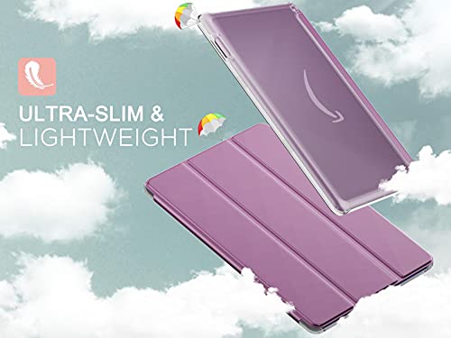 MoKo Custodia per Nuovo Kindle Fire HD 10 & 10 Plus Tablet 11a Generazione, 2021 con Schermo da 10,1", Case in PU Pelle con Supporto, Retro Traslucido, Auto Avvio/Arresto, Viola