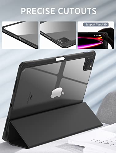 MoKo Custodia per 12,9 Pollici iPad PRO 6a/5a/4a/3a Generazione 2022/2021/2020/2018 con Portapenna Apple Pencil 2, Cover Protettiva TPU + Retro PC Rigido Antiurti Auto Sveglia/Sonno, Nero