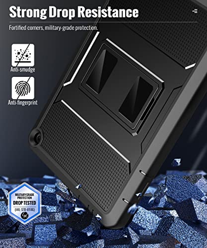 MoKo Custodia Protettiva Compatibile con All-New Amazon Kindle Fire HD 8 & 8 Plus Tablet (12th Gen,2022 Release)8", Case con Supporto a Doppio Angolo, Cover in TPU e PC, con Pellicola Protettiva, Nero