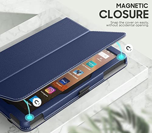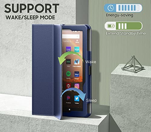 MoKo Custodia Protettiva Compatibile con all-New Kindle Fire HD 8&8 Plus (12/10th Gen 2022/2020), Cover Protettiva Pieghevole con Supporto Regolabile, Chiusura con Elastico e Manico Portatile, Indaco