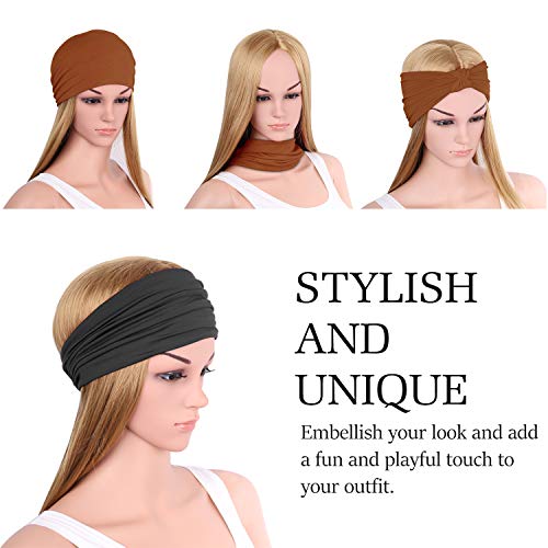 MoKo 2 Fasce Capelli, Bandane da Capelli Dim con 24x5cm, in Poliestere Spandex Protezione Sudore, Reggi Capelli, Fascia per Capelli, Allenamento, Sport, Yoga, Adulti, Bambini - Nero, Marrone