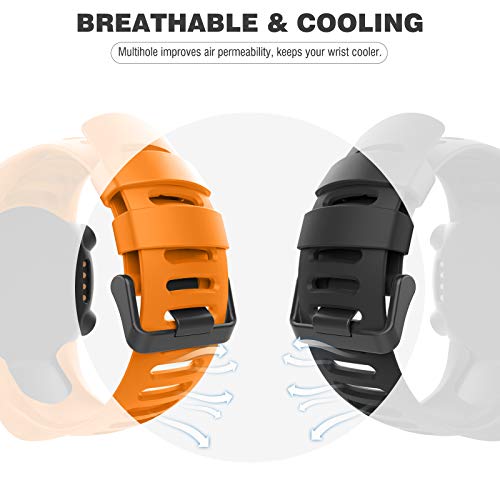 MoKo 2 Pezzi Cinturino Compatibile con Suunto Ambit 1/2/2S/2R/3/3 Sport/3 Run/3 Peak, Braccialetto di Ricambio in Morbido Silicone Accessori per Orologi, Nero + Arancione