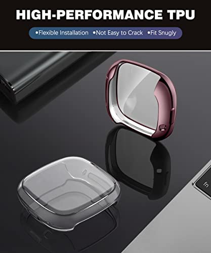 MoKo 3 Pezzi Cover Compatibile con Fitbit Versa 3/Fitbit Sense, Custodia Protettiva in Morbido TPU Protezione Completa Ultra Sottile - Rosa/Oro/Trasparente