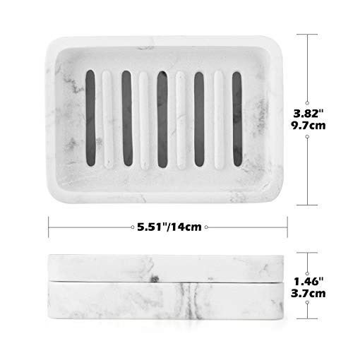 MoKo Porta Sapone in Resina con 5 Fori Drenaggio Acqua,Serbatoio Acqua, Tramatura in Marmo, Dim 14 x 9,7 x 3,7 cm, Lavabile, Impermeabile, Antimuffa, Porta Sapone per Bagno, Cucina - Marmo Bianco