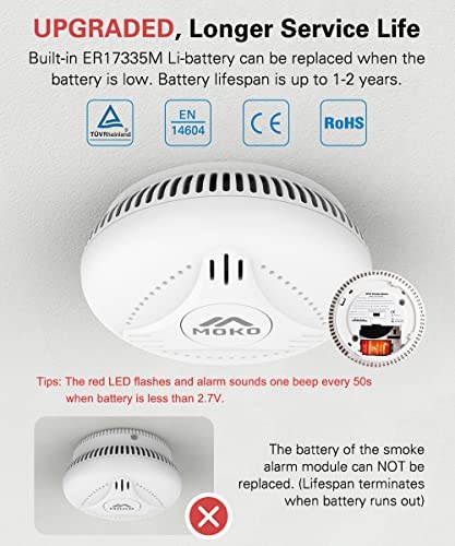 MoKo Rilevatore di Fumo Smart, Rilevatore Fumo con App Smart life, Tuya, Connessione Wifi 2,4 GHz, Accessori Casa Smart Controllo Remoto, Rilevatore per Gas, Fumo Cucina Hotel - Bianco