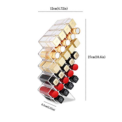 28 SCOMPATIMENTI- Il supporto per rossetti realizzato con I 28 scompartimenti trasparenti di dimensioni uguali sono ideali per inseire gli accessori cosmetici di ogni giorno come i rossetti, pennelli mantendoli ordinate e protetti da graffi oppure irti accidentali.