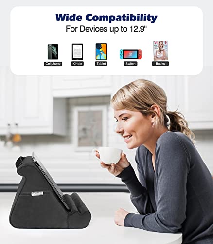 MoKo Supporto per Tablet da 4,7"-12,9", Cuscino Supporto per Tablet Compatibile con Galaxy Tab S9/S9+, iPad 10,2 2022/iPad Air 5 4 3/iPad PRO, iPhone 13 PRO Max, E-Reader, Supporto in Spugna, Nero
