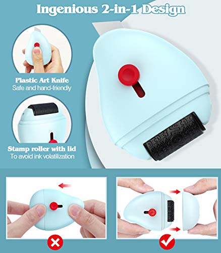 MoKo Timbro a Rullo 2 PZ, Timbri per Ufficio, Timbri per Protezione Dati, Timbri Identità Protezione, Timbro Riutilizzabile, Proteggi Privacy, Timbro Personarizzato, Ufficio Accessori, Rosa & Blu