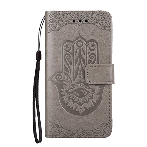 Mokyo Embossed Leather Case for HUAWEI Honor 8 [with Free Stylus Pen],Retro Elegant Flip Wallet PU Leather Case Embossing Tribal Flower Series Design with [Kickstand][Card Slots][Magnetic Closure] Ultrs Thin Book Style Case Cover & Detachable Hand Strap for HUAWEI Honor 8 - Grey