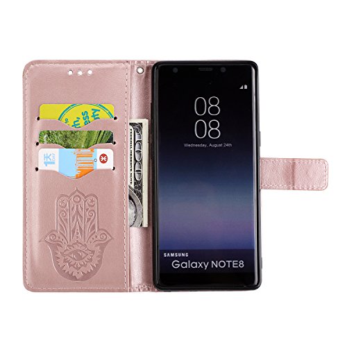 Mokyo Embossed Leather Case for Samsung Galaxy Note 8 [with Free Stylus Pen],Retro Elegant Flip Wallet PU Leather Case Embossing Tribal Flower Series Design with [Kickstand][Card Slots][Magnetic Closure] Ultrs Thin Book Style Case Cover & Detachable Hand Strap for Samsung Galaxy Note 8 - Rose Gold