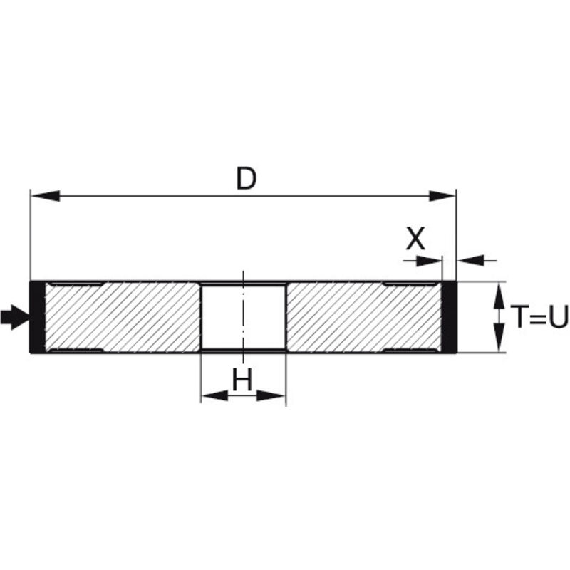 Esecuzione: Mole abrasive per utensili con rivestimento abrasivo al CBN in legante di resina sintetica per una lunga durata con capacità di asportazione elevata costante. Il corpo portante con sistema a sandwich in materiale composito di alluminio assicura un'elevata riduzione delle vibrazioni e quindi una rettifica silenziosa con risultati costanti e ottima qualità superficiale. Per una qualità superficiale fine con buona capacità di asportazione. Specifiche tecniche: B126C75B AMIGO-HSS. Uso: Per la rettifica di utensili su tutte le comuni rettificatrici. Per la rettifica di acciai per utensili e da cementazione altamente legati (HSS), stellite. Forma: 1A1Rivestimento abrasivo h X: 6 mmSigla materiale abrasivo: CBN