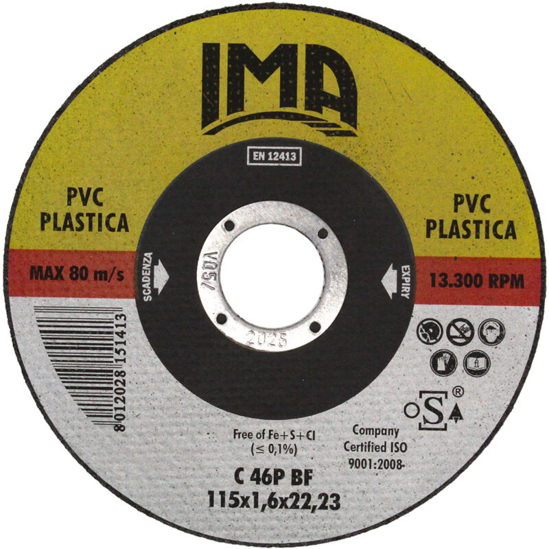 Mola abrasiva per plastica/pvc 'gold' ø 115 x 1,6 A centro piano. Per smerigliatrici angolari per il taglio di materiali plastici in genere. Foro mm 22. Velocita' max di utilizzo 80 mt/sec. Prodotto 'Made in Italy'. ø 115 x 1,6 Categoria dell'articolo: Utensili a mano ed articoli tecnici - Dischi circolari da taglio e smeriglio
