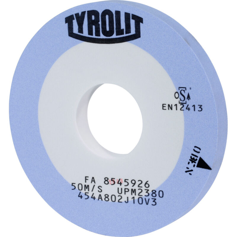 Mole abrasive di grande qualità per rettifica in tondo esterna con legante ceramico. Struttura delle mole abrasive con rapporto ottimale tra volume grana e legante, resistenza del legante e processo di produzione si contraddistinguono per: * Elevata capacità di taglio e tempi di lavorazione inferiori con usura minore. * Ridotto carico termico, lavorazione a freddo. * Assenza di tempi morti tra i lunghi cicli di ravvivatura. Specifiche tecniche: 454A 802J10 V3. Corindone sinterizzato per una maggiore durata e capacità di asportazione superiore. Particolarmente adatte per acciai altamente legati / HSS. Uso: * Impiego universale nella rettifica in tondo esterna (levigatura longitudinale, rettifica diritta/obliqua). * Per tutte le comuni rettifiche nella realizzazione di utensili, stampi e macchine (per es. Kellenberger, Studer, Schaudt, Tschudin, ecc.) * Raffreddamento con emulsione necessario;