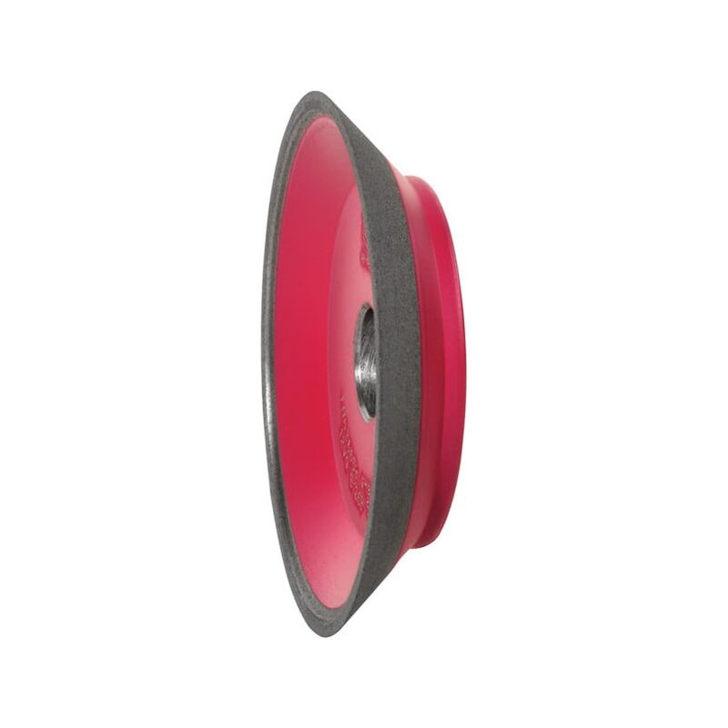 Esecuzione: Mole abrasive per utensili con rivestimento abrasivo al CBN in legante di resina sintetica per una lunga durata con capacità di asportazione elevata costante. Il corpo portante con sistema a sandwich in materiale composito di alluminio assicura un'elevata riduzione delle vibrazioni e quindi una rettifica silenziosa con risultati costanti e ottima qualità superficiale. Per una qualità superficiale fine con buona capacità di asportazione. Specifiche tecniche: B126C75B AMIGO-HSS. Uso: Per la rettifica di utensili su tutte le comuni rettificatrici. Per la rettifica di acciai per utensili e da cementazione altamente legati (HSS), stellite. Forma: 12V9Rivestimento abrasivo h X: 10 mm