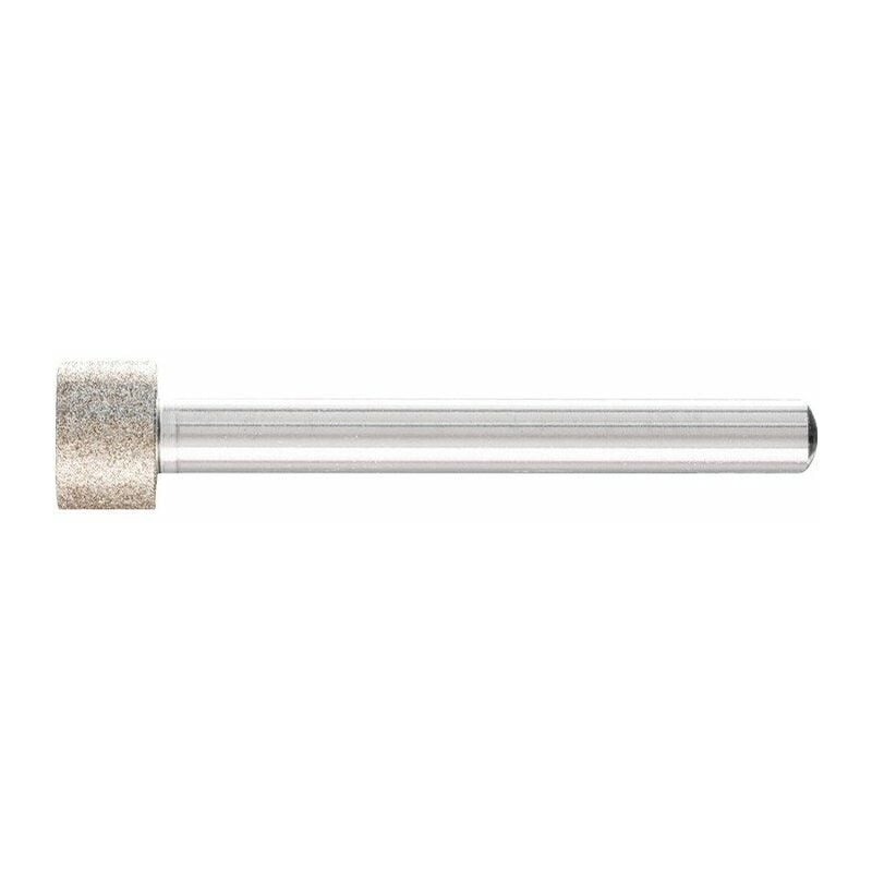 Forma cilindrica · utensile CBN legato galvanicamente per la rettifica di fori, raggi e contorni in uso stazionario e manuale · per la lavorazione di acciaio ad alta velocità, acciaio per utensili, acciaio per cuscinetti a sfere, acciaio per cassa (HSS), materiali resistenti al caldo (WS), ecc. · I perni di rettifica di un diametro di 8 mm hanno una rientranza sulla superficie anteriore · Granulometria FEPA standard, granulometria B 126 · velocità circonferenziale consigliata Vc = macinazione a secco 15 - 25 m/s Rettifica a umido 20 - 40 m/s. Granulometria: W 126, albero Ø: 3 mm, idoneità materiale ghisa: molto adatta, materiale idoneità pietra: molto adatta, marca: PFERD, materiale: CBN, Ø: 3 mm, altezza: 4 mm, idoneità materiale plastica: molto adatta. Granulometria: B 126, albero Ø: 3 mm, idoneità materiale ghisa: molto adatto, materiale idoneità pietra: molto adatto, marca: PFERD, materiale: CBN, Ø: 3 mm, altezza: 4 mm, idoneità materiale plastica: molto adatto. Granulometria: B