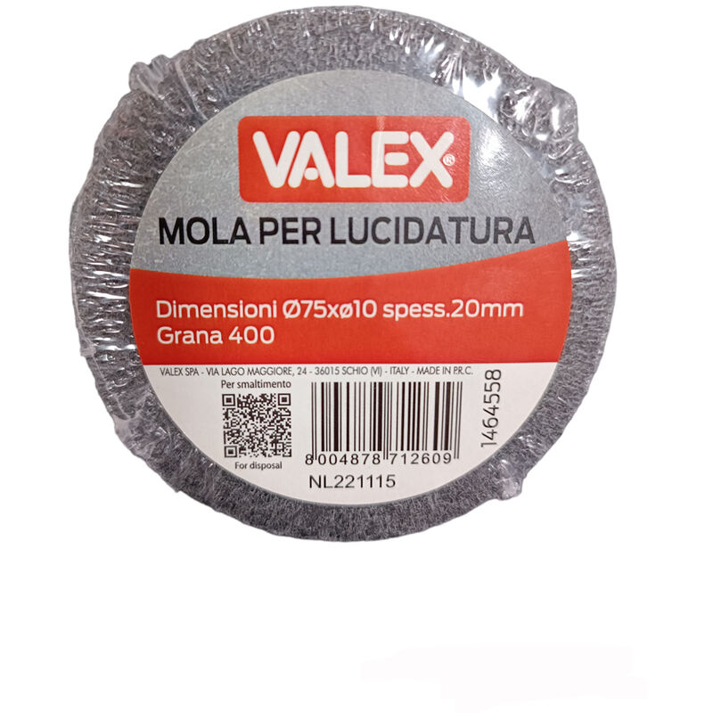 MOLA LUCIDATURA RICAMBIO VALEX Ricambio per smerigliatrice da banco: EX75. CARATTERISTICHE: • Ø esterno/foro: 75/10 mm • spessore: 20,0 mm • grana: 400 PRODOTTO DI QUALITA' LA FATTURA VIENE EMESSA PER IMPORTI SUPERIORI A € 20 E VA RICHIESTA AL MOMENTO DELL'ACQUISTO