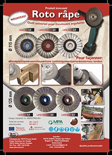 Mola Rotoraspel smerigliatrice angolare per legno, plastica, polistirolo, sculture, gomma, arte e forme Ø 125 mm x 22,2 mm (lama 2,5 mm, grana media)